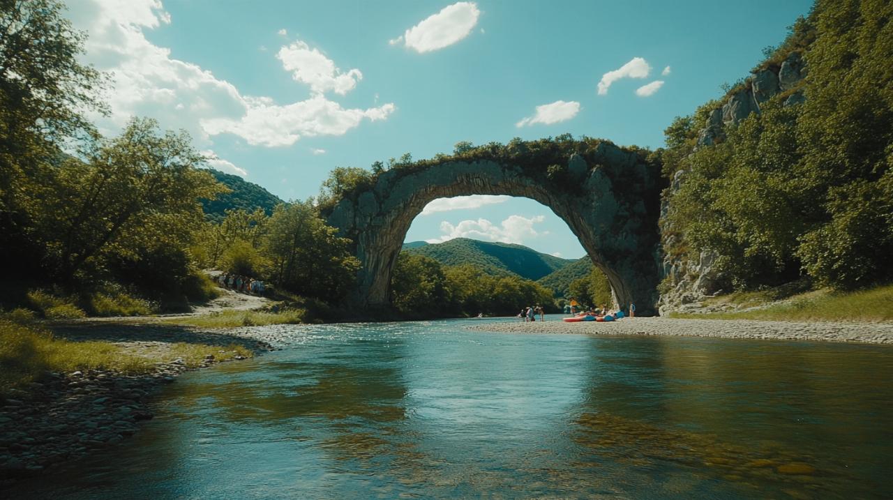 Le Pont d'Arc, cette arche naturelle de 54 mètres de hauteur et 60 mètres de largeur, attire chaque année 1,5 million de visiteurs. La route panoramique propose 11 belvédères sur 29 kilomètres, offrant des points de vue exceptionnels sur les gorges. Les sentiers balisés permettent aux marcheurs de tous niveaux d'admirer ces paysages grandioses. Pour une balade accessible, le Cirque de Gens propose un parcours de 20 minutes dans un environnement naturel remarquable.